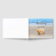 A unique wedding invitation featuring a seashell that has a natural heart shape.  A perfect symbol of love for the celebration of love.  The shell is surrounded by sand with ocean waves in the distance creating the perfect image for the beach wedding.