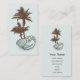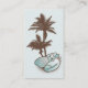 stylised seashells with hibiscus flower and palm tree silhouette in blue and brown.