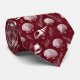 Tie in a pattern of seashells and delicate seaweed patterns arranged on a deep maroon red background, creating a striking contrast. The detailed line work adds an intricate and naturalistic feel to the composition.
