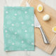 I love collecting seashells at the beach and observing sea creatures like starfish and sand dollars. This inspired me to draw this cute pattern of sea shells, sand dollars, and starfish in white on a blue green background sprinkled with specks of sand. It's shown here on a custom kitchen towel. Adjust the pattern size to your preference, change the background colour, and add any text to personalise.
