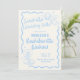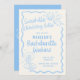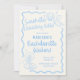 On the front, you'll find space for all the essential details: the bride's name, the location, and the date of the bachelorette weekend. The charming handwritten font and beachy icons create a fun and relaxed vibe, inviting guests to join in the festivities. The soft sky blue and off white colour scheme evokes the serene beauty of the coast, while the playful design elements ensure that your invitation stands out.