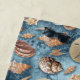 A variety of seashells on a blue coral background.