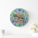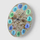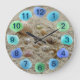 This clock is perfect for your beach house or to add a coastal vibe to any house. Colourful pieces of sea glass in hues of blue aqua and green mark the hours on this coastal beach clock. Assorted sea shells are nestled in beach sand in the background.
