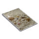 A variety of colourful little seashells are nestled in the beach sand on this notebook. It is perfect for jotting down notes, writing journal, planner, diary, or school notebook.