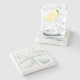 The coasters are gorgeous, a quality feel and heavy weight. They look like a precious archeological find. A rustic stone juxtaposed with a modern floral black and white print. I like the way the print goes slightly imperfect on the cut stone edges giving them a kind-of natural beauty.