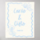 The charming handwritten font creates a fun and relaxed vibe, inviting guests to join in the festivities. The soft sky blue and off white colour scheme evokes the serene beauty of the coast, while the playful design elements ensure that your welcome sign stands out.