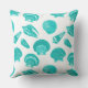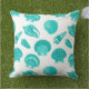 Digitally enhanced, vintage illustrations of a variety of seashells rendered in a conte crayon effect - turquoise / peacock on a white background outdoor pillow