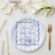 Seashells blue handrawn wavy border beach baby shower monogrammed paper plates template, baby shower personalised paper plates, sketch beach baby shower printed paper plates , summer baby shower personalised table decor, seashells on the beach baby shower paper plates, handwriting blue stripes baby shower personalised paper plates