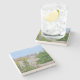 This stone coaster features a beach scene at Hammonasset State Park in Madison, Connectcut