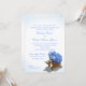 Pretty blue hydrangea in a sea shell beach wedding invitation. Personalise text as preferred.