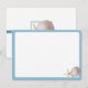 Seashore treasures, flat note card, beach thank you. Elegant square frame with starfish and sand dollar accented in ocean blue.