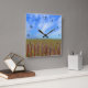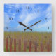 This wall clock features a stunning image of beach grass, fence, and blue sky.