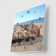 This beach wall clock features a scene from Hammonasset State Park in Madison, Connecticut.