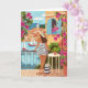 Seaside Balcony Woman Illustration Art Greeting Card