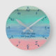 This clock has my original digital painting of a pink sand beach. It has a pink beach with blue water. Above the water is a blue sky with white fluffy clouds. You can change or remove the text if you like by using the "personalise this template" option.