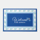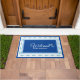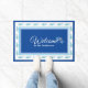 Shown in the large size, this doormat is part of the "Seaside" collection and has fun seahorses in Blue/Green all around the border edges of the door mat. In Royal Blue, this mat has coordinating stripes of Sky Blue, Cornflower Blue and White. Welcome written in fancy script in the centre accompanied by two starfish and a sand dollar all in Blue's along with your personalised text of your last name. Customise this design or buy as shown.