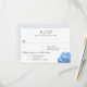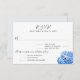 Seaside Garden menu reply cards in white with black text and a blue hydrangea with starfish design. Sample text asks guests for an exact count if they are attending. They also need to place number amounts beside each entrée listed. This helps the couple keep unexpected guests from attending and gives an accurate amount of meals needed. Modern fonts in script and printed form are used and every template is easy to customise. Reverse is light grey blue colour.