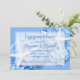 Engagement party invitations with blue flowers. White sea stars (starfish) are tucked among the realistic, light blue flowers in this horizontal design. Customise the blue text for any type of pre-wedding party or shower. Also, there is an option to download and share the invitations online.