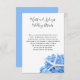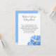 Seaside Garden blue hydrangea wedding details enclosure cards. Size 4x5 shown, or choose a smaller size to fit inside an invitation envelope. Customise text in two places with script at the top and printed text in paragraph form. This elegant beach themed design has a big white sea star (starfish) and beautiful blue hydrangea flower at the bottom. Cards are white with black text. Include any information guests will need for a destination event (travel, hotels) or directions to the ceremony and / or reception. Reverse is solid blue.