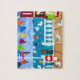 A jigsaw puzzle of a seaside view from the promenade with flags, seagulls, yachts, an ice-cream stall and children, from a handpainted paper collage by Judy Adamson.