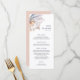 Coastal chic wedding menu features your starter courses, entrees and desserts in elegant lettering, with your names and wedding date accented by a vintage style painted whelk seashell illustration in pastel blush pink and ivory. Coordinates with our Seaside collection for nautical, beach or summer weddings and celebrations.