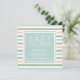 Invite guests to celebrate the mama to be with our gender neutral baby shower invitations in a soft seaside pastel colour palette of mint, aqua, peach and sand. Chic cabana stripes are perfect for a spring or summer affair!