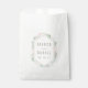 Thank your wedding guests with some sweet treats in these personalised favour bags, designed to match our Seaside Pastels wedding collection. Design features an elongated geometric hexagon shape flanked by marine life illustrations --seashells, starfish, seaweed and nautilus shells -- in airy beach pastels. Add your names and wedding date in sandy tan lettering.