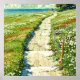 Illustrative artwork of a footpath by the sea alongside grass and flowers. A sun-drenched coastal trail. A charming stone path winds its way through a vibrant meadow bursting with colourful wildflowers – cheerful white daisies, striking red blooms, and touches of yellow and orange. The lush green grass and abundant blossoms create a rich tapestry of nature's beauty. In the distance, the sparkling blue sea stretches out to meet the horizon under a bright, expansive sky, offering a sense of peace and freedom. This piece perfectly captures the joy and serenity of a walk by the water on a beautiful day, making it a perfect addition to bring a breath of fresh air and colour into your room. This artwork can be customised, printed, and or downloaded.