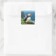 A sweet puffin stickers that has a cute illustration of a puffin sitting by the sea on an seaside dune or ledge.
