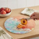 Introducing the "Seaside Serenity" glass cutting board – a serene depiction that brings the calming beauty of the ocean into your kitchen. This round cutting board features a tranquil scene of ocean waves crashing onto a sandy beach, with a few delicate seashells scattered along the shore. It captures the essence of seaside serenity and natural coastal charm. Crafted from durable glass, the "Seaside Serenity" cutting board is both functional and decorative. Whether used for food preparation or as a coastal-themed accent piece, it adds a touch of beachside relaxation to your culinary space. Perfect for ocean lovers and those who appreciate coastal decor, this cutting board is a versatile addition to any kitchen or a thoughtful gift for beach enthusiasts.