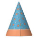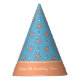 Add a custom touch to your child's birthday party with this adorable personalised paper party hat. Hat has a pattern of seaside stars and music notes on colourful blue and orange. Add a custom message, such as happy birthday and your little one's name and age.