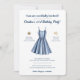 Set a breezy and stylish tone for your next celebration with this elegant nautical party invitation. The centerpiece is a beautifully illustrated sleeveless dress featuring classic blue-and-white vertical stripes, instantly creating a relaxed, coastal vibe. Flanked by a rustic golden compass on one side and a trio of subtle stars on the other, the clean layout balances traditional maritime charm with modern simplicity. With crisp typography resting against a clean white background, this design effortlessly captures the feeling of a sun-drenched afternoon by the water, making it the perfect way to gather your friends and family for a memorable seaside event.