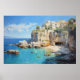 Seaside Village on the Cliffs Oil Painting Poster