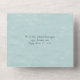 Fiftieth, or any year, anniversary ceremony invitation with detachable reply card. This all-in-one invitation design has a seashore, beach and surf, background, with a big white sand dollar at the bottom. A modern hand-printed font is used with three places for addressing the card on the outside. Include a mail-to, return address, and address to return the RSVP. If an outer envelope is being used, remove all unneeded address text. A stamp can be added to the reply card so guests can simply fill in names and response info and drop it into the mail. The menu reply can be changed to a simple “will attend” and “will not attend”. Although the sample text is for a wedding anniversary, the main invitation text template is in paragraph form and can be easily changed for a wedding or other coastal themed event. The outside graphic is sea blue.