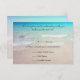 Destination beach wedding entrée reply cards. Tropical, turquoise water and beach sand with black text. Get an exact guest count by including a total number of guests invited on each RSVP. The guests will then choose a number UP TO THAT AMOUNT. Or delete that line of text, if you prefer not to use it. Include up to 3 meals / menu items for guests to choose by initial or number.