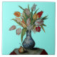 SEASON'S FRUITS /TULIPS IN VASE AND PEAR Teal Blue Ceramic Tile