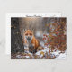 A beautiful wildlife nature inspired Christmas holiday postcard. A beautiful red fox in the snow with winter foliage. Season's greetings!