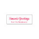 You can personalize this stamp to show your custom message. (Shown: Season's Greetings from the Hendersons ) This stamp could be used instead of signing holiday greeting cards or to show who the giver of a gift is on a gift tag. The text for the greeting is in a cursive script.