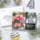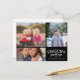 Stylish lovely clean and simple modern horizontal Christmas postcard designed with text Season's Greetings on black and three photos. Replace the template images with your favourite photos and change all the template information on both sides with your own. For best results use high resolution images. To customise the size and placing of your photos click Customise it button. This design has a wording: "Wishing you a joyous holiday season and a new year filled with peace and love." but you can change the words with your own. Photography © Storytree Studios, Stanford, CA