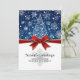 Season's Greetings Artistic Christmas Tree Design Holiday Flat Cards is a template for you to personalise with your own holiday greeting with your family names or business employees. A winter's night scene of falling snowflakes around a holiday tree with an image of a red ribbon dividing the winter scene from the holiday greetings printed below it. These greeting flat cards are also perfect for corporate and small business holiday cards.