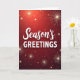 This festive holiday greeting card features a striking, bold design perfect for the winter season. The background is a rich, shimmering red gradient, accented with bright golden sparks and exploding fireworks. The large, easily readable text clearly states "Season's Greetings" in both elegant script and block lettering. This general holiday card is ideal for sharing warm wishes with friends, family, or business associates. The celebratory, joyful design conveys warmth and holiday cheer. ✨🎄🎁