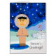 Season's Greetings! Warm wishes for a Merry Christmas and Happy New Year sent via a cold weather inhabitant. Igloo with red and white striped candy cane sticking out of the top. Starry night filled sky is reflected on an icy patch next to the person in parka. Art, image, and verse copyright © Shoaff Ballanger Studios.
