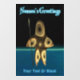 A brown-toned fractal image suggesting a highly-stylised Inuit hunter, wearing traditional fur clothing, holding a harpoon with an ivory head. The image is superimposed on a background depicting the dark polar winter. Text reading, "Season's Greeting" appears in glowing blue and white. Add your own additional text.