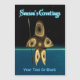 A brown-toned fractal image suggesting a highly-stylised Inuit hunter, wearing traditional fur clothing, holding a harpoon with an ivory head. The image is superimposed on a background depicting the dark polar winter. Text reading, "Season's Greeting" appears in glowing blue and white. Add your own additional text.