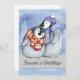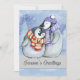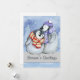 This is a lovely penguin card for the holidays. It features two sweet penguins, one wearing a red and white scarf and the other with a purple and white scarf. The boy penguin is wearing a purple beanie with a white pompom. The two look like true love birds! The text reads “season’s greetings”. The background colours are pale blue and soft lavender. The penguin holiday card is fully customisable allowing you to add your own text and background colours. Simply click the customise button to personalise the design. This design also features on a variety of other products such as stickers, gift tags, favour boxes, stickers, paper plates and take out boxes.