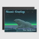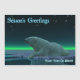 A peaceful moment in the long Arctic night. A Polar Bear rests at the edge of an open area in the pack ice. The Northern Lights glow in the distance; bright stars twinkle overhead. "Season's Greetings" appears in glowing blue and white. Add your own additional text.