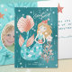 This magical mermaid holiday card features a festive underwater scene, sparkling stars, and coastal Christmas ornaments. Inside is a charming bauble frame to showcase your family's photo. Personalise with your family name and greeting. Original artwork by Marketa Stengl.