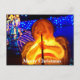 Seasons Greetings Merry Christmas Angel Post card with lighted Christmas Angel against a blue background adorning the night among the Annual Christmas lights in Downtown Mount Dora, Florida.