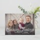 This 1-photo holiday card features modern script and says "Season's Greetings" with a patterned back design that you can customise the colour of.