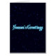"Season's Greetings" appears in glowing blue and white on a starfield background.